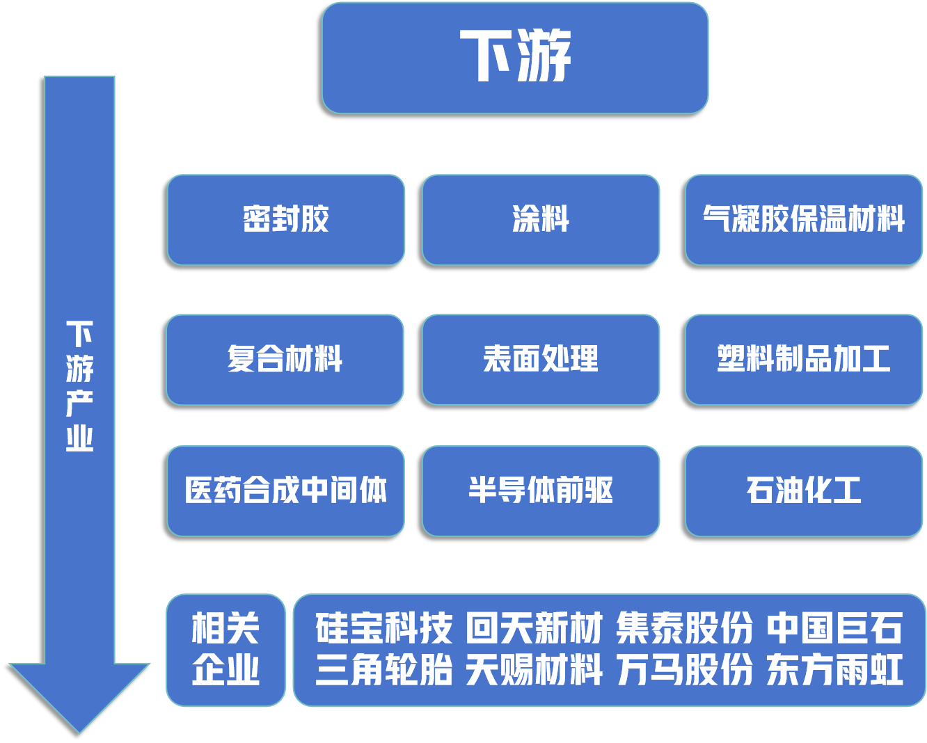 下游则是有机硅深加工产品的应用部分,这里的深加工产品包括但不限于硅树脂、硅油、硅橡胶、硅烷偶联剂、白炭黑等。这些产品广泛应用于电子电器、建筑材料、新能源电力、汽车交通、医疗护理、日化纺织、工业助剂、国防军工等诸多行业。在这一环节中,广东、浙江、江苏等省份是有机硅下游产业的主要聚集地。这些省份经济发达,消费市场广阔,对于有机硅深加工产品的需求量大,因此成为有机硅下游产业的主要集中地。